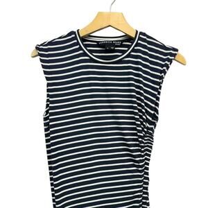 Veronica Beard Jean Ruched Side Muscle Tank Dress Navy/White Striped size XS