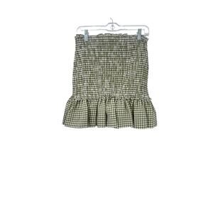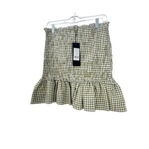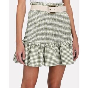 Veronica Beard Jeans Aloya Smocked Gingham Mini Skirt Pull On Green Size M NWT