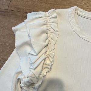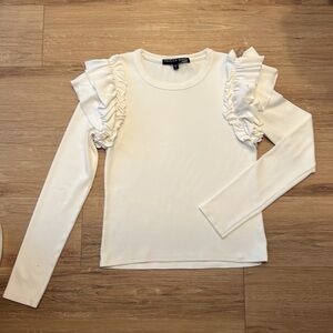 Veronica Beard Jeans Avedon Ribbed T-Shirt Long Sleeve Ruffle Shoulders Size - M