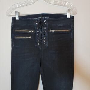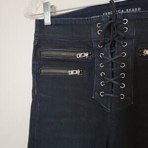 Veronica Beard Jeans Denim Sz 27 Lita 10" Moto Lace Up Made in USA Skinny Dark