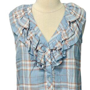 Veronica Beard Jeans Leina Sleevless Blouse Button Down Shirt Blue Plaid Size XS