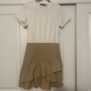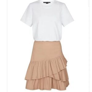 Veronica Beard Jeans Noha Flared Ruffle T-Shirt Mini Dress stretch cotton ruffle