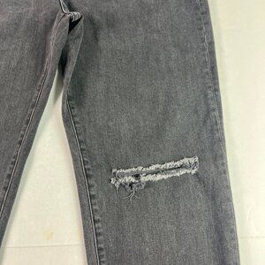 Style- Jeans Benzi Mid Rise Girlfriend Black Faded Distressed Raw Hem Denim