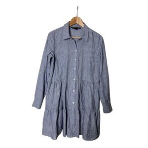 Veronica Beard Jemila Mini Dress Blue Striped Tiered Shirtdress M