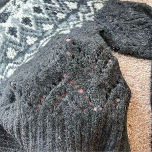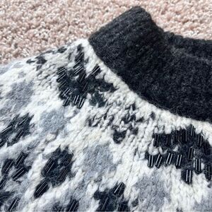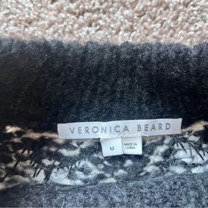Veronica Beard Jerin Faire Isle Beaded Sweater. Size medium. Crochet knit, somewhat see through in spots. Beautiful dark charcoal gray. Wool and alpaca material. Some fuzziness to the fabric, pictured, just the nature of the material. In excellent condition! Such a gorgeous piece for fall and winter! Originally $498.