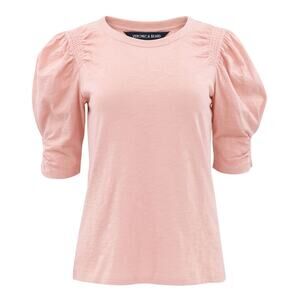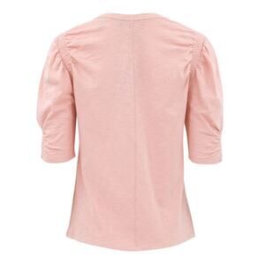 Veronica Beard top, ruched sleeve t-shirt, pink cotton tee, Rosebloom Veronica Beard shirt, short sleeve designer top, feminine casual blouse, luxury cotton t-shirt, elevated basics, spring summer pink tee, soft cotton Veronica Beard top