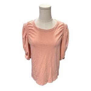 Veronica Beard Jessa Ruched-Sleeve Tee – Rosebloom Pink – Size Small – 100% Cotton – EUC