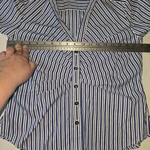 This shirt features a classic striped design with a flattering button-down style. Its versatile pattern adds a touch of sophistication to any wardrobe.