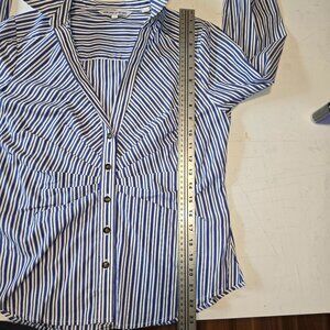 Veronica Beard Joelle Gathered Stripe Button-Front Top Size 8
