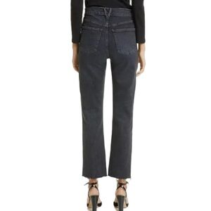 Veronica Beard Joey Straight Leg High Rise Raw Hem Ankle Black Denim Jeans in Size 29.