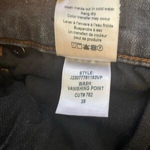 These jeans are in excellent pre-owned condition. The black wash, called Vanishing Point, has faded perfectly as intended.