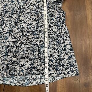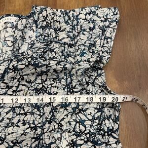 Veronica Beard “Joi” Blouse in navy abstract print, size 12. A polished yet feminine top featuring flutter ruffle sleeves, a flattering v-neckline, subtle shirring, and a relaxed silhouette that pairs effortlessly with jeans, trousers, or office wear. Lightweight fabric drapes beautifully and elevates everyday outfits with VB’s signature modern-classic style. Perfect for work, dinner, events, or layered under blazers.