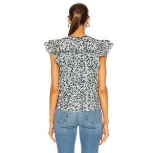 Veronica Beard Joi Abstract Print Flutter Sleeve Blouse in Navy Blue size 12