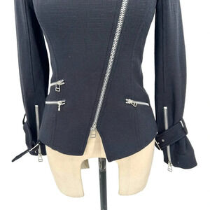 Veronica Beard Jordan Collarless Moto Jacket In Black Size 0