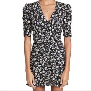 Veronica Beard Josephine Floral Silk Ruched Puff Sleeve Mini Dress