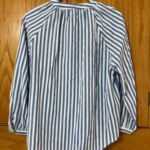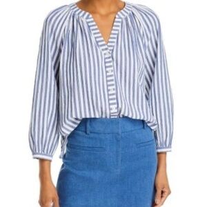 Crafted of textured cotton, Veronica Beard's Judith top features a bright striped print and split neck.