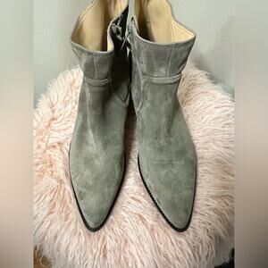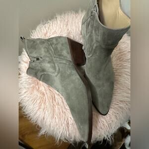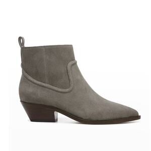 Western style takes a modern turn with this block-heel bootie shaped from smooth suede.