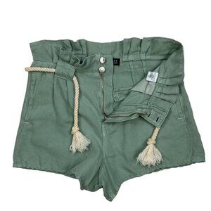 This Veronica Beard women's Linen Blend Karter Pleated Short makes a statement due to it's pleated front, zip fly with button, pockets, high rise, rope style belt, paperbag waist, faux back pockets and green shade.