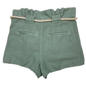 Veronica Beard Karter Pleated Shorts 6 Seagreen Rope Belt Linen Blend High Rise