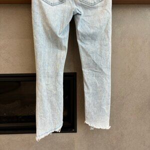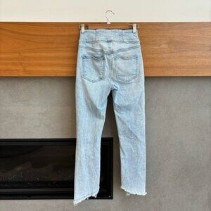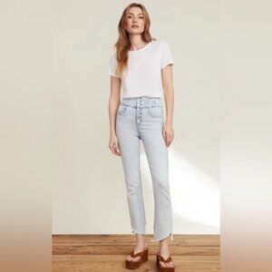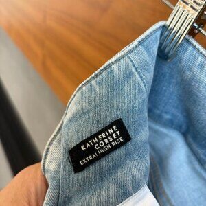 Katherine jeans feature an ultra high rise with a corset-style waist. A dolphin hem completes the casual-cool look of these faded light blue jeans. Pair with a white tank and clog platform sandals for street-style chic.