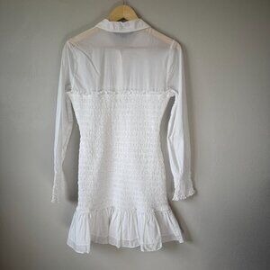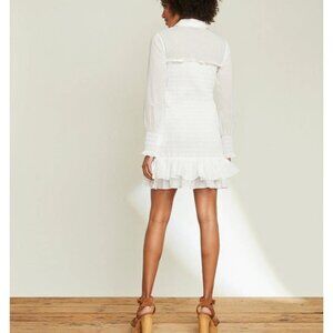 Veronica Beard Kelsey Button-Down Ruffled Smocked Dress in White Size 8