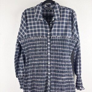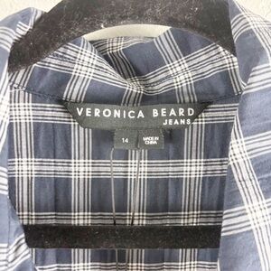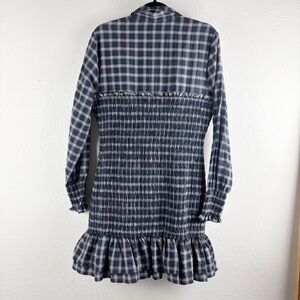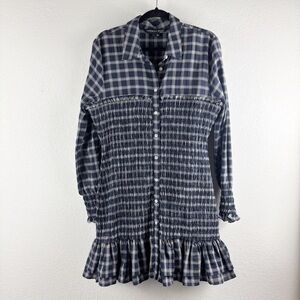 Veronica Beard Kelsey Long Sleeve Smocked Mini Dress Navy Blue Plaid Size 14