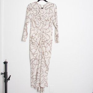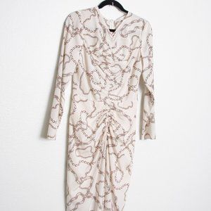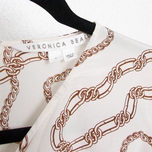 Veronica Beard Kersey Dress Chain Print Silk Ecru Brown 4