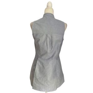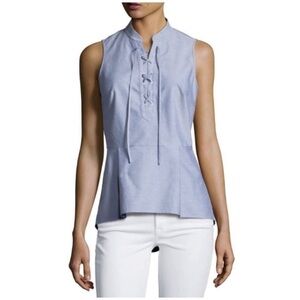 This will be you go to elevated casual top that is beautifully tailored with clean lines. Effortlessly Chic providing an ultra flattering silhouette. Veronica Beard Blue chambray Lace Up Front Sleeveless Pleated Peplum Hem Top blouse