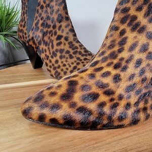 • Style tags: ankle boots, booties,leopard print, cheetah, animal print, calf hair, pull on. Chelsea boots, Italian, luxury, cone heel, avante guard, contemporary