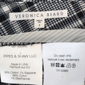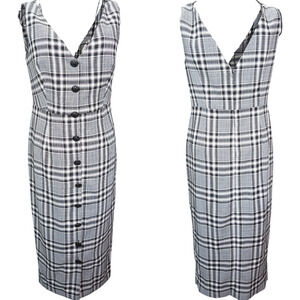 Veronica Beard Lark XS 2 V-Neck Button-Front Black White Plaid Sheath Midi Dress
