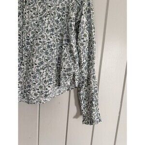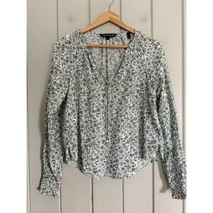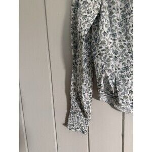 Veronica Beard Layana Top XS Multi Floral Long-Sleeve Green Boho V-Neck Tie Neck