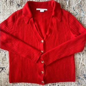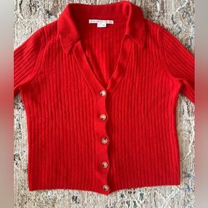 Veronica Beard Lazana Cardigan Womens Size Large Orange Cashmere Preppy Luxury