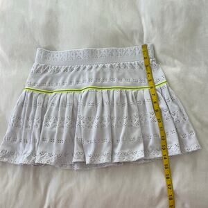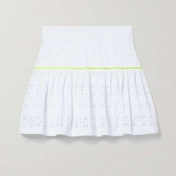 • Style: High-rise tennis skort with eyelet knit, built-in shorts, neon grosgrain stripe