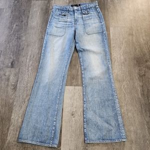 Stylish flare jeans by Veronica Beard. Light blue denim. Wide leg design. Perfect for casual wear.