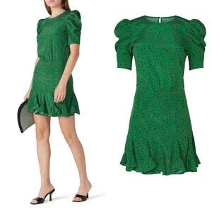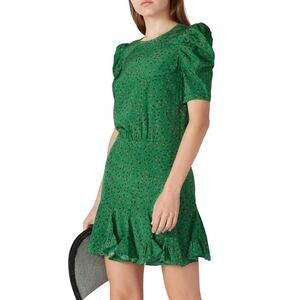 Veronica Beard Lila Dress Silk Floral Short Puff Sleeve Blouson Mini Green 8