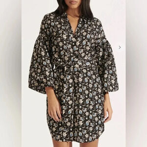 Veronica Beard Linen Dress Women’s 2 Samy Floral Print Tie Waist Mini Blue