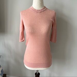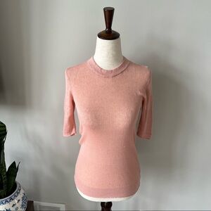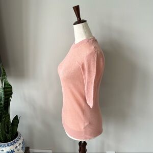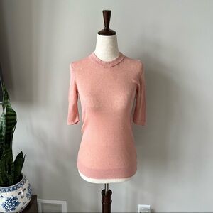 Veronica Beard Linen Ribbed Dean Short Sleeve Sweater - Light Peach