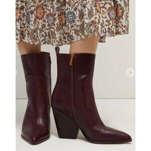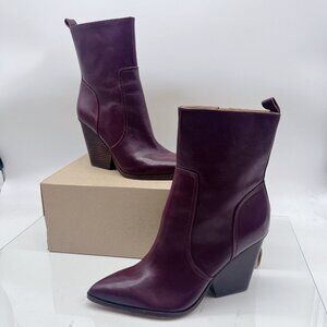 $498 Veronica Beard Logan Women’s Ankle Boots Heels Merlot Red Leather Zip US 7