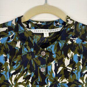 Veronica Beard Long-Sleeve Printed Button-Front Tie-Waist Shirtdress - Size 10