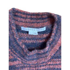 Veronica Beard Lumina Merino Wool Crew Neck Sweater Orange Black Fall L