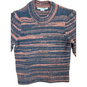 Veronica Beard Lumina Merino Wool Crew Neck Cropped Sweater Orange Black Fall Halloween Colors