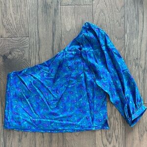 Veronica Beard's Lyric Top is crafted of silk and adorned with a floral motif. The three-quarter-length one-shoulder sleeve lends an elegant feel to the piece.