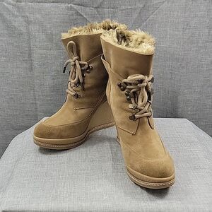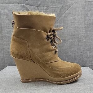 Veronica Beard Mack Suede Wedge Boot - Shearling lined, khaki women's 39 / 8.5US