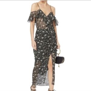 Elegant off-shoulder dress featuring a floral design. Perfect for any occasion.