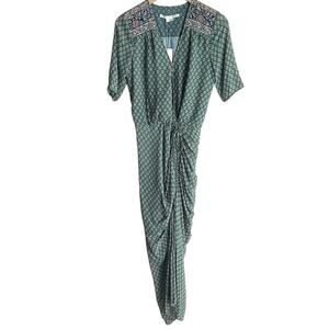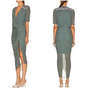 Veronica Beard Mariposa Silk Midi Dress Seagrass Green Multi