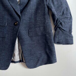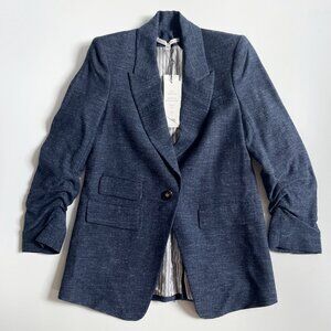 Veronica Beard's Martel Dickey Jacket makes a statement while remaining effortless in its silhouette. Ruched-up sleeves enhance the casual element of this relaxed blazer style. This ALL-SEASONS jacket is a great investment and extremely versatile. Wear with a white t-shirt in summer and a sweater dickey in winter.