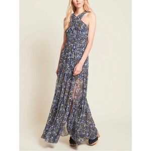 Perfect for wedding season, the Florencia dress is a feminine favorite with its paisley-floral print and delicate silk fabrication. Criss-cross halter straps provide an on-trend look, while the tiered maxi silhouette gives the style a sense of ease. A defined waist, back slit, and front-leg slit complete the standout dress.