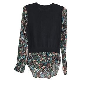 Veronica Beard Mellow Sweater Black Cashmere Mixed Media Floral Long Sleeve Sz S