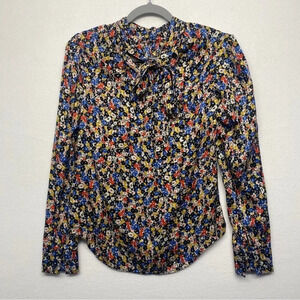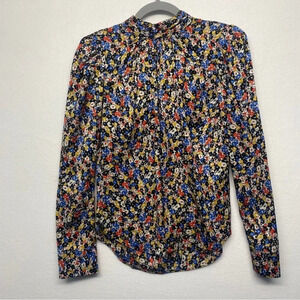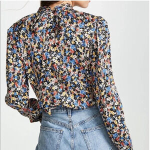 Veronica Beard Mena Gathered Floral Puff Sleeve Top Silk 0 Mock Neck