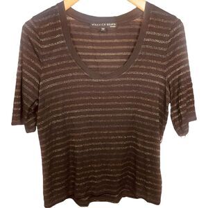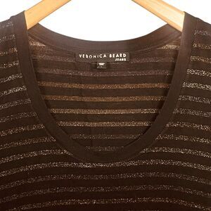 veronica beard blouse, metallic striped top, relaxed fit blouse, shimmer knit top, rayon blend blouse, size L designer top, elevated basics, evening shimmer blouse, versatile day-to-night top, Veronica Beard knit, quiet luxury blouse, secondhand VB